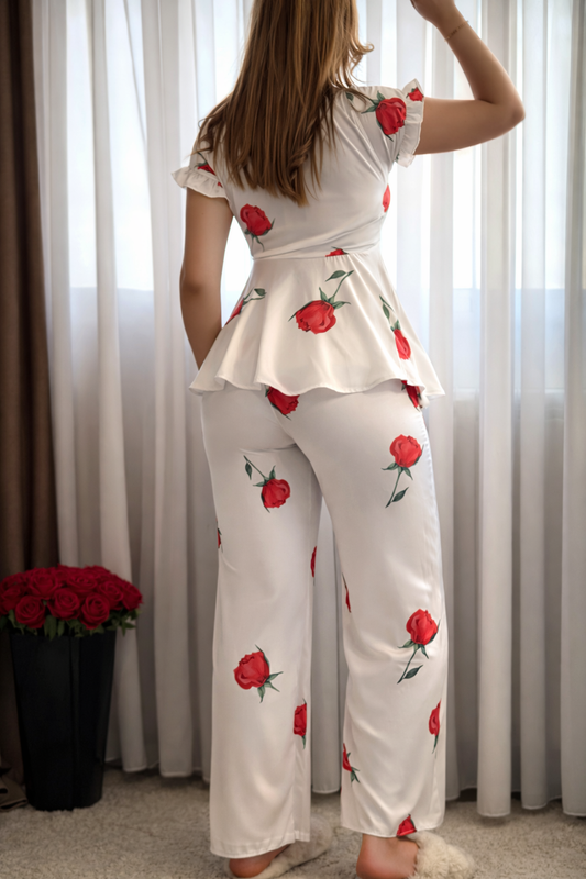 Ensemble cache-coeur a motif fleur rouge MIRNA