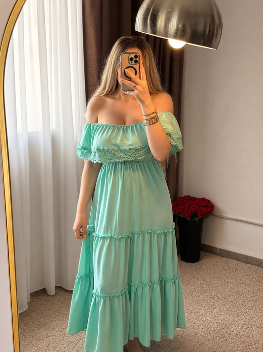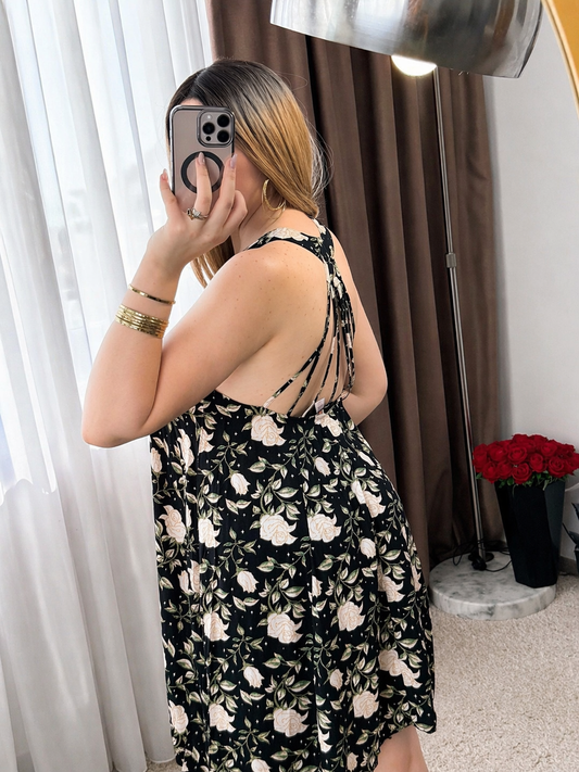 Promo! تخفيضRobe nuisette noir motif a fleur vert BALI