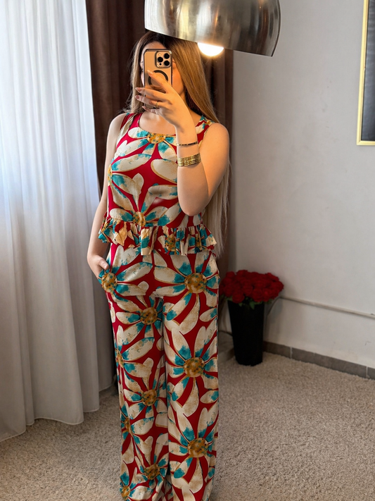 Ensemble pantalon OFF SHOULDER demi manche rouge MELY