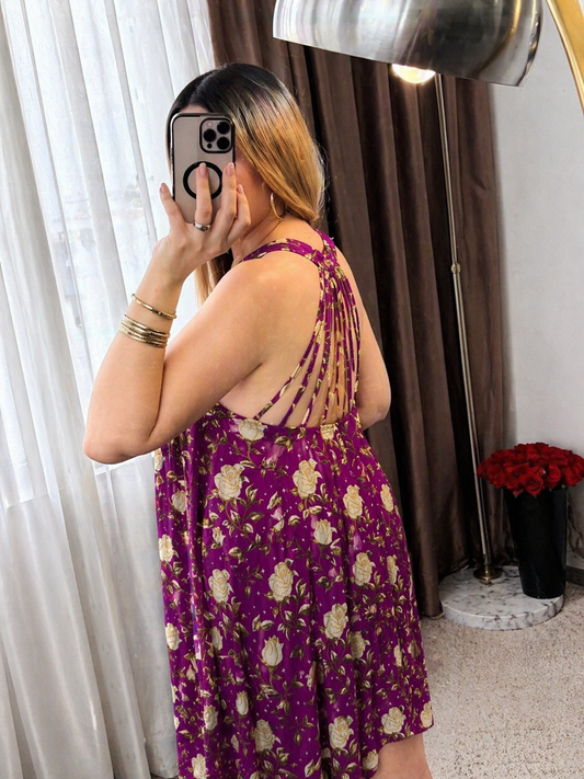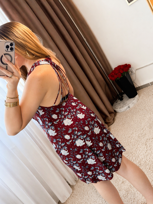 Promo! تخفيضRobe nuisette noir motif a fleur rouge BALI