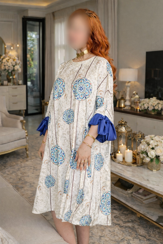 Jebba midi en velours blanche a motif bleu ZELLIGE