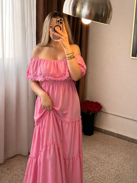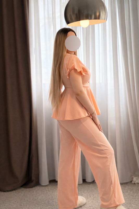 Ensemble pantalon OFF SHOULDER demi manche rose MELY