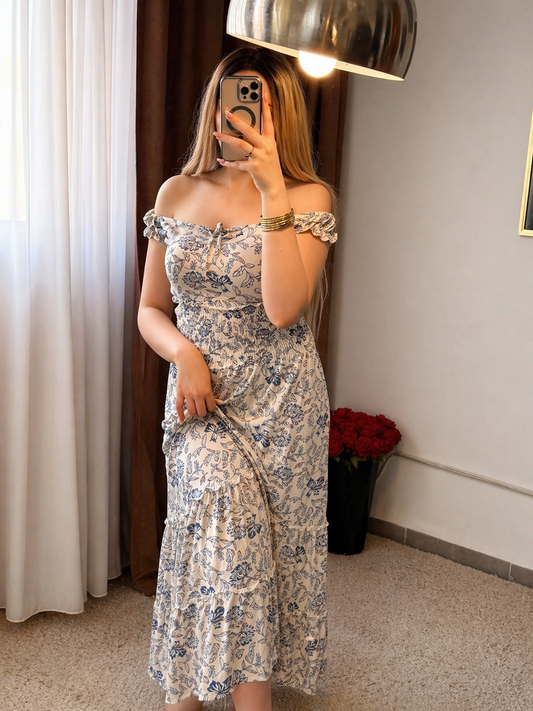 Promo! تخفيضRobe nuisette noir motif a fleur bleu BALI