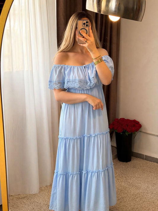 Ensemble 3 pièces bustier pantalon jupe bleu ciel motif NOEUD bleu ASHLEY