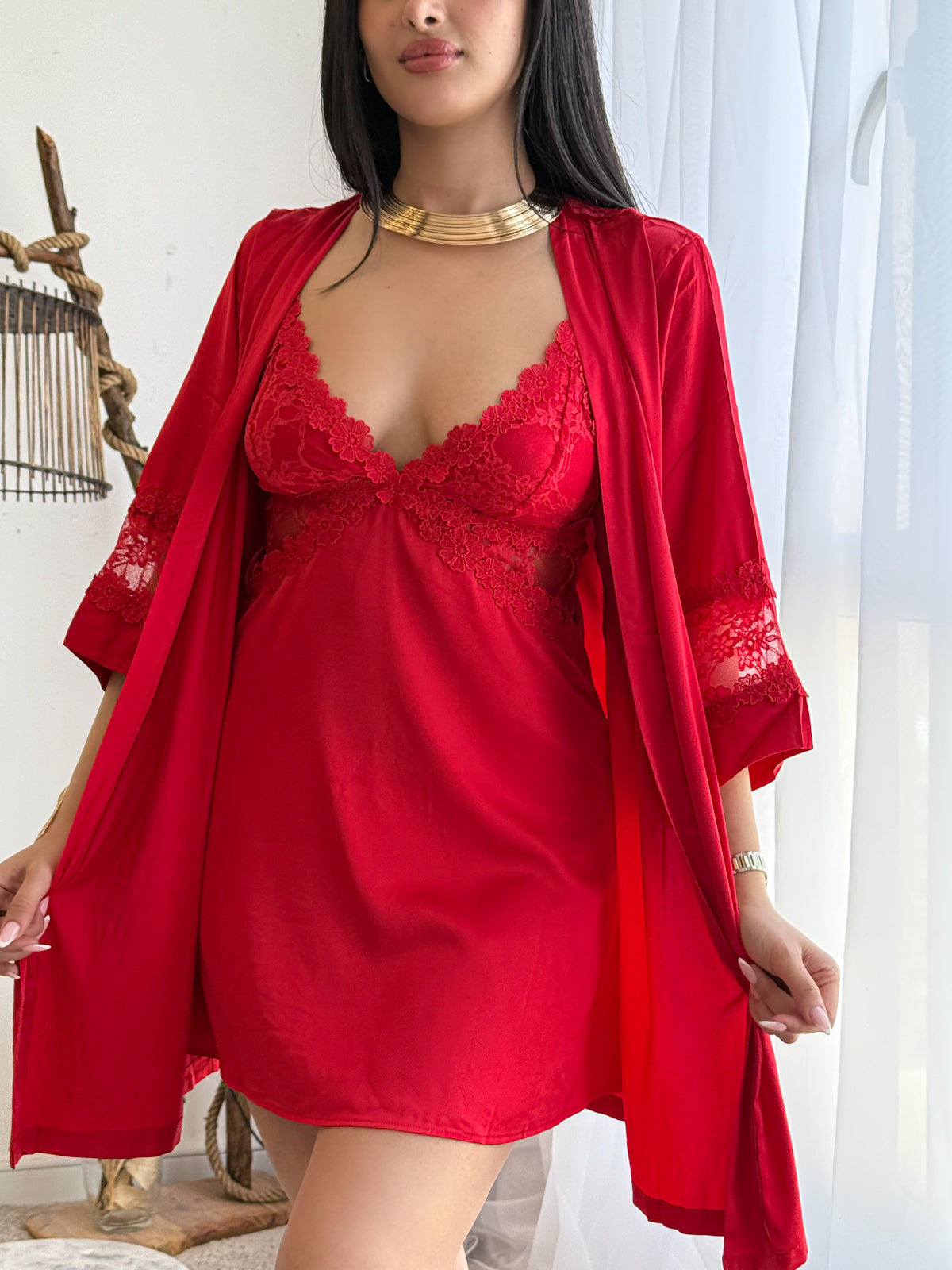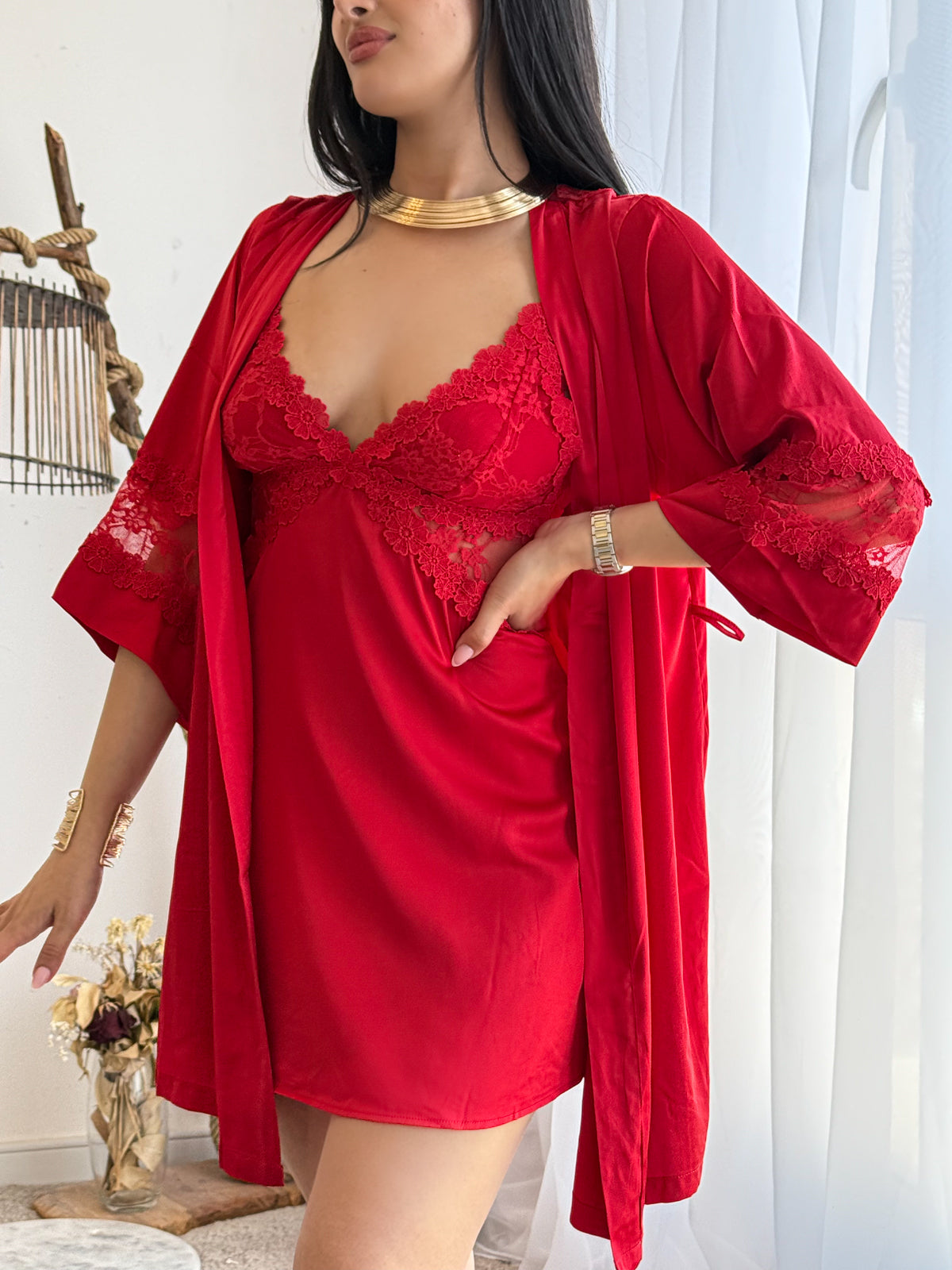 Ensemble 2 pièces nuisette rouge AURAVELLA