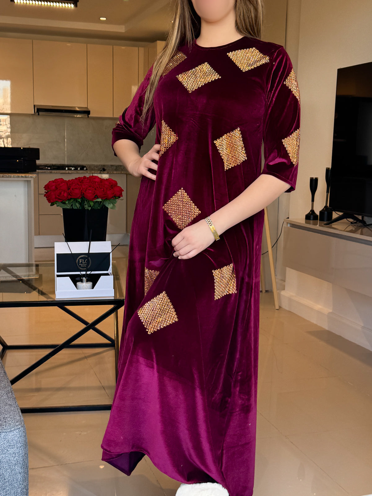 Jebba velours NAIRA grenat brillants